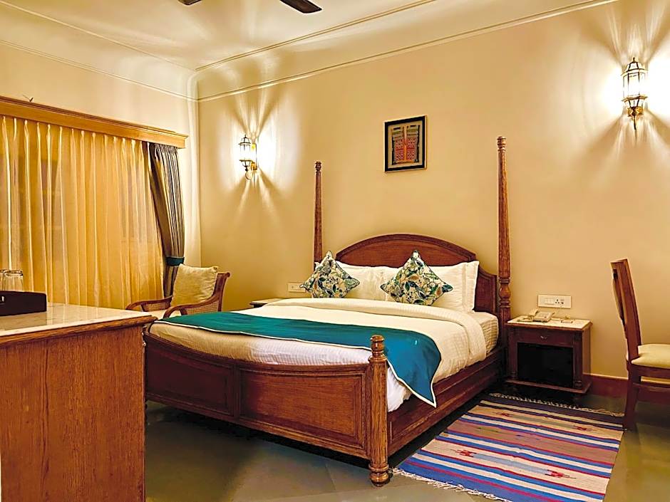 After a day of exploring Ranakpur’s mesmerizing temples and serene desert landscapes, return to the tranquil oasis that is THE TRISHALA VILAS. Dive into the inviting outdoor pool—perfect for unwinding in the warm Rajasthan sun, or simply lounge on the sun decks while soaking up the scenic surroundings. The lush gardens surrounding the hotel create a peaceful backdrop, ideal for a leisurely stroll or a relaxing afternoon with a book in hand, making every moment spent here feel like a well-deserved escape.